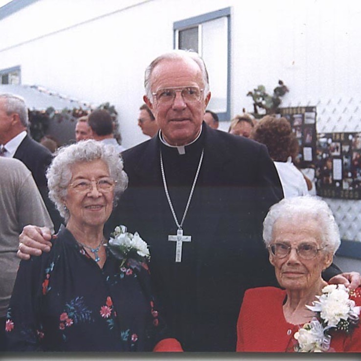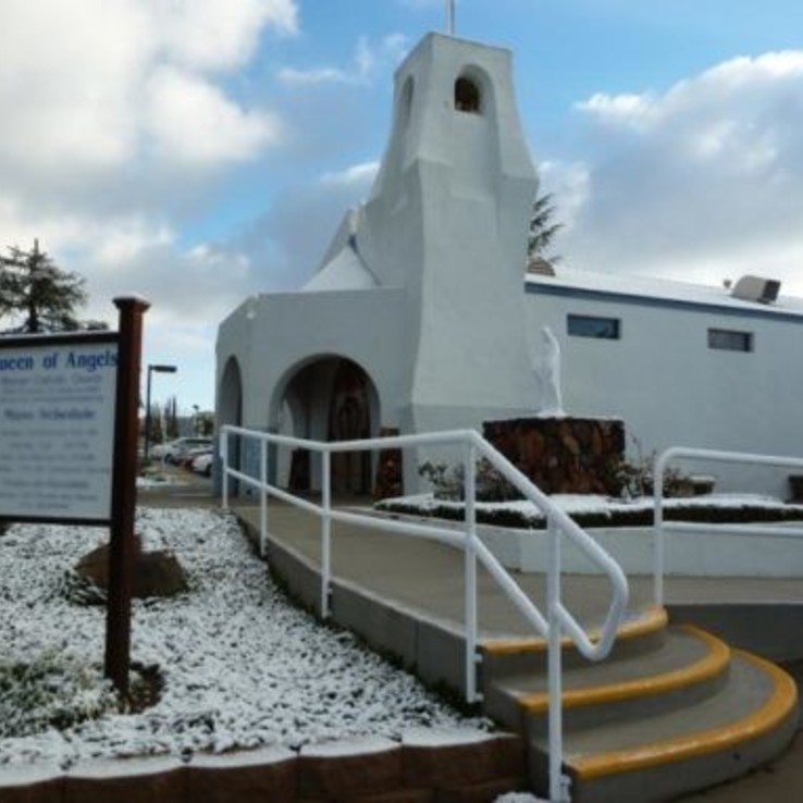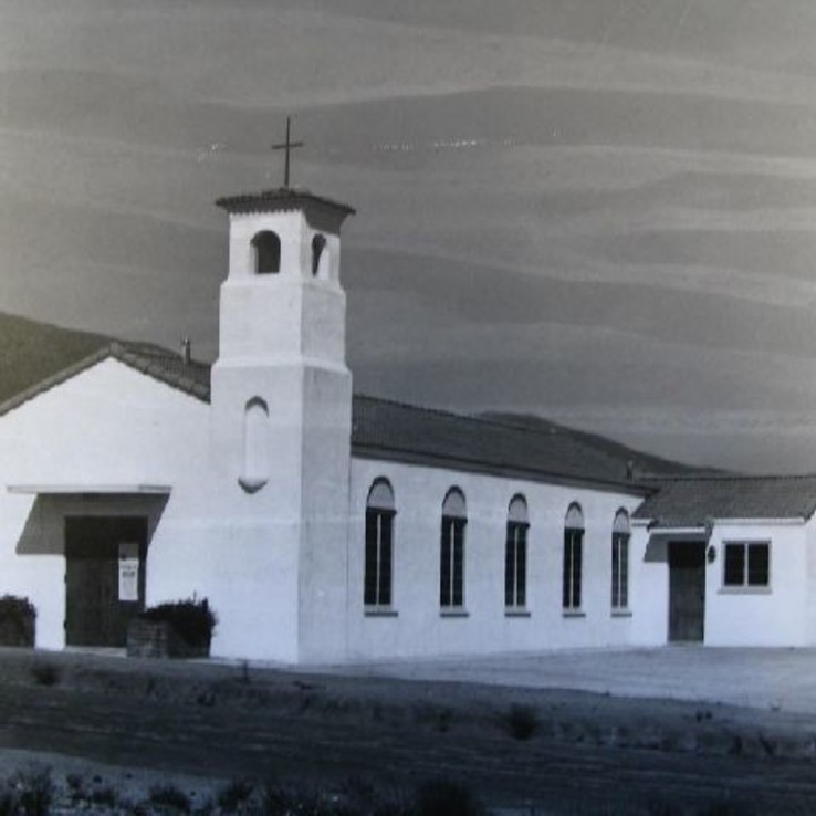 In 1946, through the courtesy of the Sheedy family, and with permission of the Most Reverend Charles F. Buddy, the first Bishop of San Diego, Mass was celebrated at the Sheedy’s ranch off Highway 80, by Father Joseph Hill. A few years later, in 1950, the Catholic community in Alpine received its first pastor, Father Earl Ullman. Mass continued at the Sheedy ranch until the early spring of 1951, when a church building was made possible through a donation of land by John Vitalich. While no official records exist, it is believed that a groundbreaking ceremony was held soon after, in early 1951. Mass was celebrated at the new Queen of Angels Catholic Church, originally named St. Philomena, for the first time on Christmas Day 1951, and the new parish was formally dedicated June 15, 1952, by Bishop Charles Buddy.